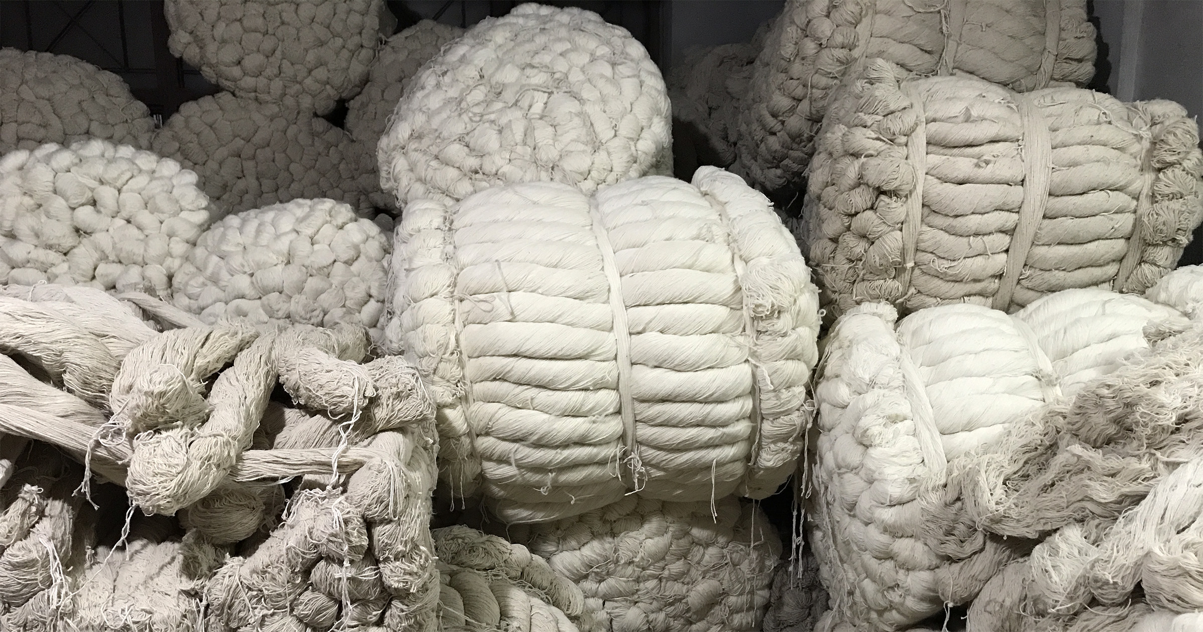 Materials Matter, Bailed hanks of undyed wool at Khantze & Co. in Kathmandu await dying and then knotting into fine handmade Nepali-Tibetan carpets. | Photograph by The Ruggist.